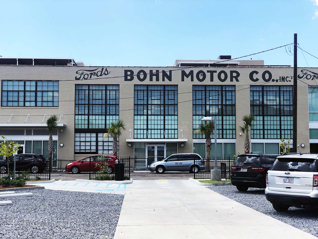 Left vacant for a decade after being hit by a massive fire and Hurricane Katrina, this historic landmark was finally restored. Designed in 1925 by noted NOLA architect Emile Weil for the Bohn Motor Company Automobile dealership, the re-construction project began when the building was lacking a roof and windows. Only the existing brick exterior façade was salvageable.